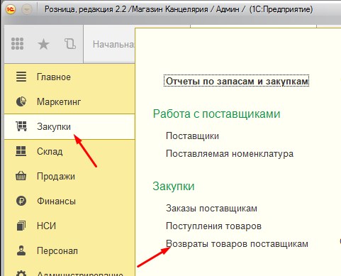 Возврат товаров поставщику в программе 1С:Розница 2.2 формируется очень просто и не имеет особых настроек и возможностей, что исключает ошибки при вводе документов.